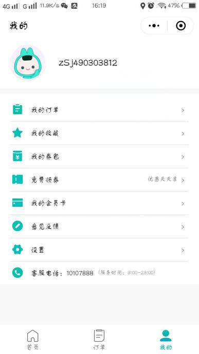 5、个人中心:在个人中心可以管理自己的登录名,登录密码。我的收藏,我的卡券,我的订单等等。
